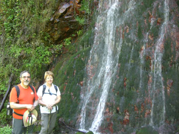 A destacar una muy alta, con abundante agua deslizándose por una pared de verde musgo que destacaba sobre el color rojizo de la piedra.