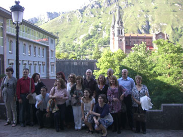 Esta noche era la celebración de la cena de despedida pero antes iba a tener lugar una misa en la Abadía de Covadonga, celebrada por el mismo abad y con los cantos de la escolanía de la basílica, todo un lujo según nos comentan ya que ellos mismos no suelen tener este privilegio. La misa también es un recuerdo al compañero senderista de Sa Nostra, Martín Terrasa. Antes de esta celebración visitamos la Cueva Santa con la figura de La Santina.