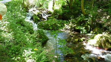 El río a nuestra izquierda transcurre desde hace rato ya a nuestra vista, saltando las juguetonas aguas entre piedras y abundante vegetación.