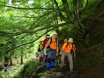 Verdes intensos lo invaden todo, salvo los macizos de roca caliza, gravemente erosionados por el viento y el agua. | ||||