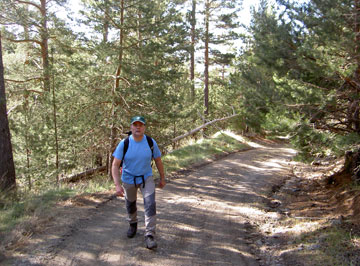 Perdimos uno de los hitos que indicaban la senda correcta a la Hoya del Portillo, y tuvimos que trochar por un pinar. | ||||
