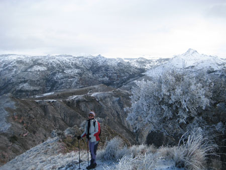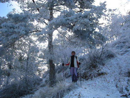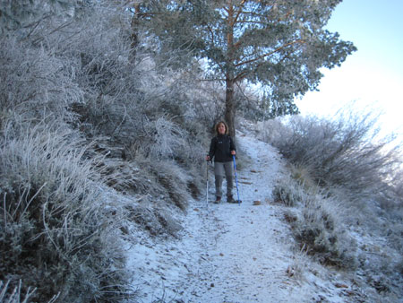 El camino estaba helado, lo que propicio que en numerosas ocasiones nos resbalaramos. Incluso la orilla del camino me jugo una mala pasada, hundiendome de lleno en el hielo y mojandome de agua totalmente.