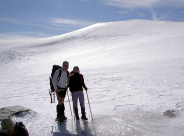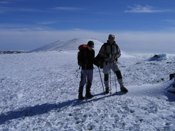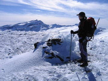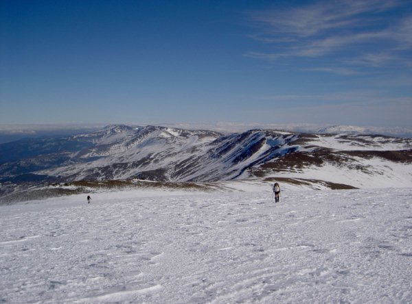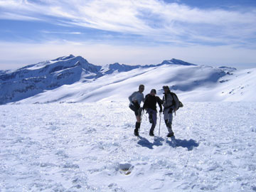 Pues bien, con nuestros crampones y nuestros bastones, hicimos cumbre sobre las 14:30h. La panorámica desde la cima