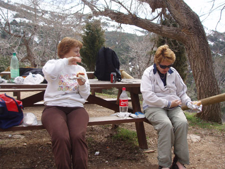 Por fin, se acabó la nieve poco antes de llegar a la Cortijuela, donde lo primero que hicimos fue descalzarnos y luego comer.
