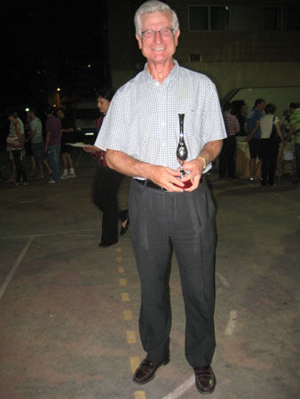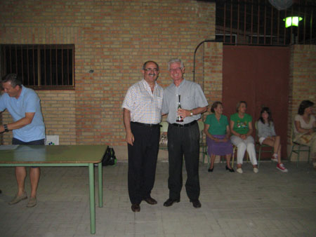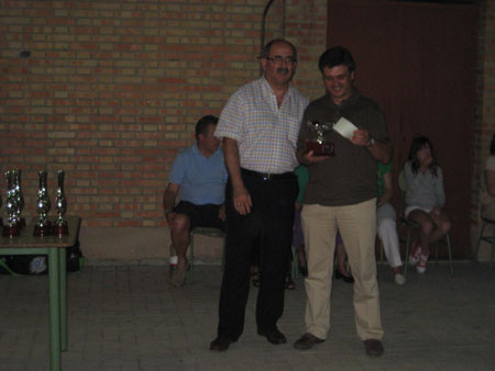 Trofeo a la regularidad, que recoge de manos del Presidente de la Asociación Sagrada Familia.