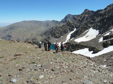 Tras un duro ascenso hasta las posiciones del Veleta el grupo se dividió en 2, los que optaron por partir hacia la Laguna de la Caldera y los que optaron por Laguna Larga.
