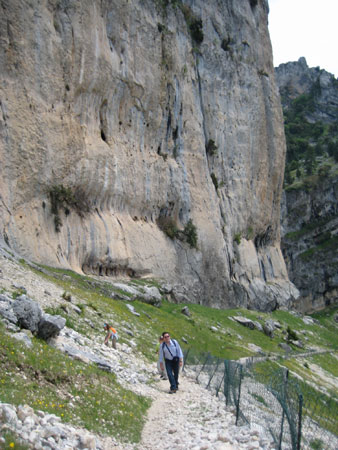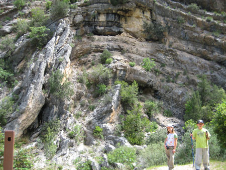 Podemos encontrar notables plegamientos de estratos calcáreos, no solo por su forma convexa -anticlinal- sino por sus proporciones. En este punto, Inma se acordó especialmente de Rafa.