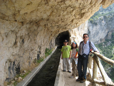 Pasamos por los tuneles de conducción de la Central hidroeléctrica. Risas, temores, pantalones mojados..., todos tipo de sensaciones al pasar por estos dos tuneles oscuros.