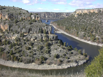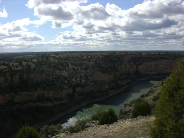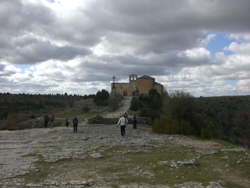 En este priorato se hospedaban San Frutos y sus hermanos San Valentín y Santa Engracia dedicados a la vida contemplativa. Y es que el paisaje no es para menos, da mucho de sí para estar contemplando esta maravilla. Pero parece que será otro día porque el viento helado empuja todo lo que puede, así que , una vez visto todo ello, decidimos volvernos porque los estómagos estaban ya protestando.