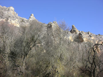 Esta ruta es corta, no llega a los 2 km. y a lo largo de ella se disfruta de similar paisaje que en la Senda Larga, que acabamos de andar y tiene varios hitos indicando otras tantas cuevas ( Cueva del Cura, Cueva de la Parra, Cueva del Santero) y finaliza en lo que antes era la presa de la Molinilla. A partir de aquí ya no está permitido el paso.