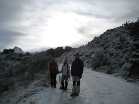 | Al levantarnos y ver que la lluvía no había hecho acto de presencia, decidimos realizar la subida al Trevenque, para poder pisar nieve. | ||
