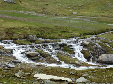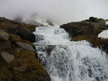 Las nubes bajas no nos dejaban divisar las cumbres, pero contemplar el manto verde que empezábamos a dejar abajo y las lenguas de nieve cada vez mas cercanas era todo un espectáculo.