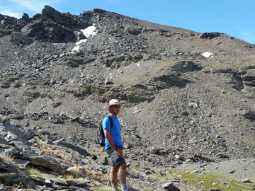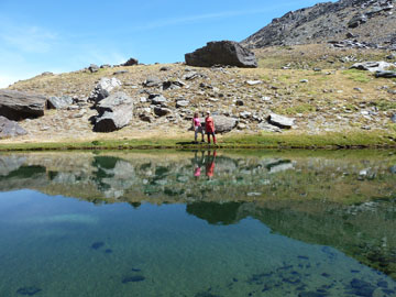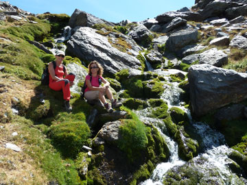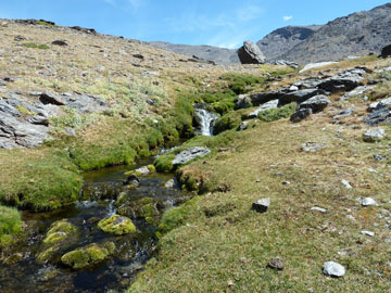 Seguimos, atravesando la arista del Cartujo por una zona incómoda de andar debido a lo descompuesto del terreno para, una vez superada, ver el desagüe de la laguna del Carnero. El transcurso por esta zona, llamada el cascajar del Cartujo, se realiza siguiendo algunos hitos que van indicando el mejor camino, ya que el sendero es imposible por el tremendo pedregal. De todas formas no es muy incómodo de andar". Desde esta laguna, un pequeño esfuerzo más y llegaremos a la laguna de La Mula, desde donde descenderemos al río Dílar para seguir su curso y llegar a nuestro destino: Las Chorreras del Molinillo.