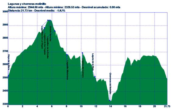 Se visitan la citada laguna de las Yeguas, los lagunillos de la Virgen y desde ahí se deja el sendero que conduce a los Tajos de la Virgen para dirigimos siguiendo alguna traza de sendero que se pierde hacia el lagunillo de la ermita de la virgen.