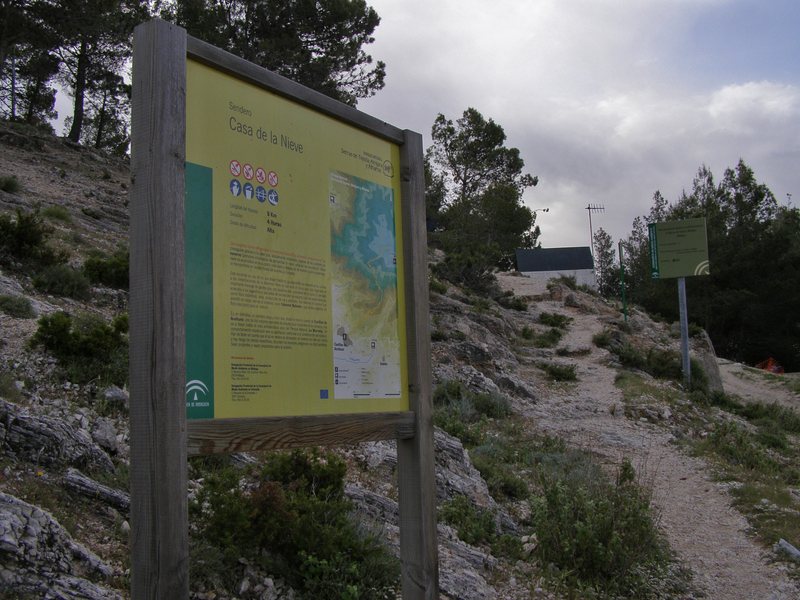A partir de este punto tomaremos dirección Este por la cuerda de la sierra pasando por la vaguada que viene casi a desaparecer llegando a la altura de los "Tajos Púlpitos", a 1.834 m. Seguiremos en dirección Norte hasta alcanzar el pantano en los alrededores de la "Casa de la Nieve", a 1.868 m. Esta "Casa de la Nieve" es en la actualidad una edificación en ruinas, reconocida por los pluviómetros de metal que existen en el lugar y que nos dice que estamos en el punto más alto de la provincia de Málaga.