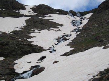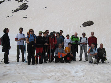 El primer día visitamos la Cañada de Siete Lagunas, en el Parque Nacional de Sierra Nevada, donde los participantes pudieron contemplar, además de las Lagunas, la sorprendente caída de las Chorreas Negras, disfrutar de un paisaje nevado en pleno mes de junio y hacer conjeturas sobre el origen etimológico del río Culo Perro. Era una exigente marcha de 16 kilómetros. 8 de ellos de constante subida. Los otros 8 de permanente bajada. Y el resto por un cómodo terreno llano.