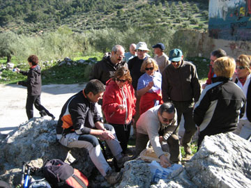 En bus -gran invento, no hay que conducir y se puede beber cerveza a discreción después de la ruta- nos dirigimos hacia Jaén 16 compañeros mas otros dos que vienen en coche. Siguiendo las instrucciones que nos habían preparado los senderistas de Jaén, llegamos directamente y sin problemas hasta el lugar de la cita: el barranco de las Tinajas, a unos 20 Km. de Jaén capital.