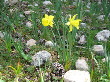 El lugar es una auténtica delicia: inmensos y verdes prados repletos de plantas de narcisos y lirios, algunos abriéndose ya en un esplendoroso amarillo.