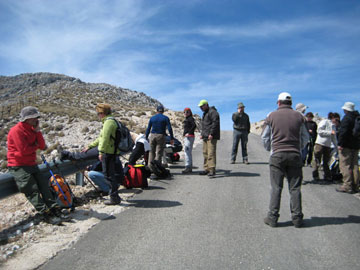 Ganamos altura rápidamente, el grupo se va estirando pero finalmente todos llegamos a la carretera que va hasta la cumbre a eso de las 3 de tarde.