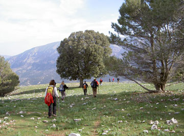 Enseguida empezamos a ascender: Andrés ya nos advierte que la subida hay que tomársela con filosofía y buena letra, nos esperan 1.200m. de desnivel hasta la cumbre de La Pandera en un ascenso continuado, sostenido y exigente que nos llevará hasta los 1.872m. de la cima.