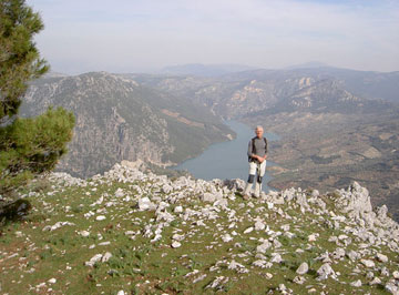 Por el camino nos encontramos con esta panorámica de la zona del Pantano del Quiebrajano y la Sierra de la Pandera.
