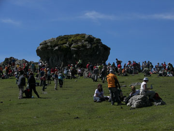 Este pico nos vuelve a ofrecer espectaculares vistas en todas direcciones, pero ¿ quién es el guapo que se para a contemplarlas con semejante ventolera?. Pasando la cima y ya en su cara suroeste el viento desaparece como por arte de magia y podemos disfrutar de una ratito de relax, cara al sol como caracoles.