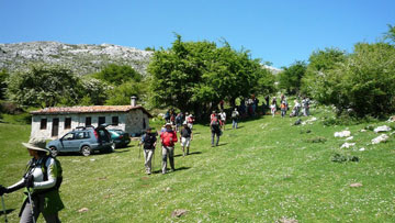 Y llegamos a la magnífica majada de Espineres dónde nos esperaba un abundante avituallamiento, sidra, empanadas de carne, bollos preñaus, tapas de embutidos y un rato de descanso en este bonito paraje.