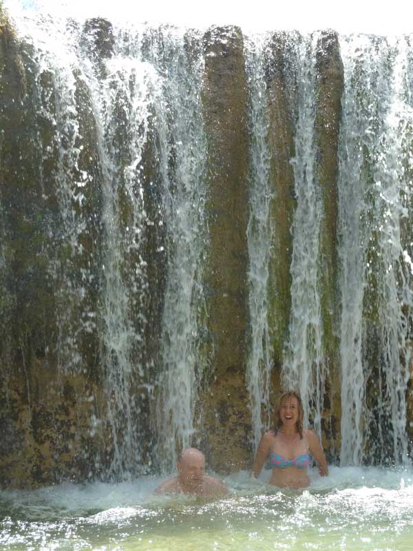 Después de 950m bastante refrescantes y divertidos, alcanzamos una antigua presa, lugar perfecto para pegarnos un buen chapuzón.