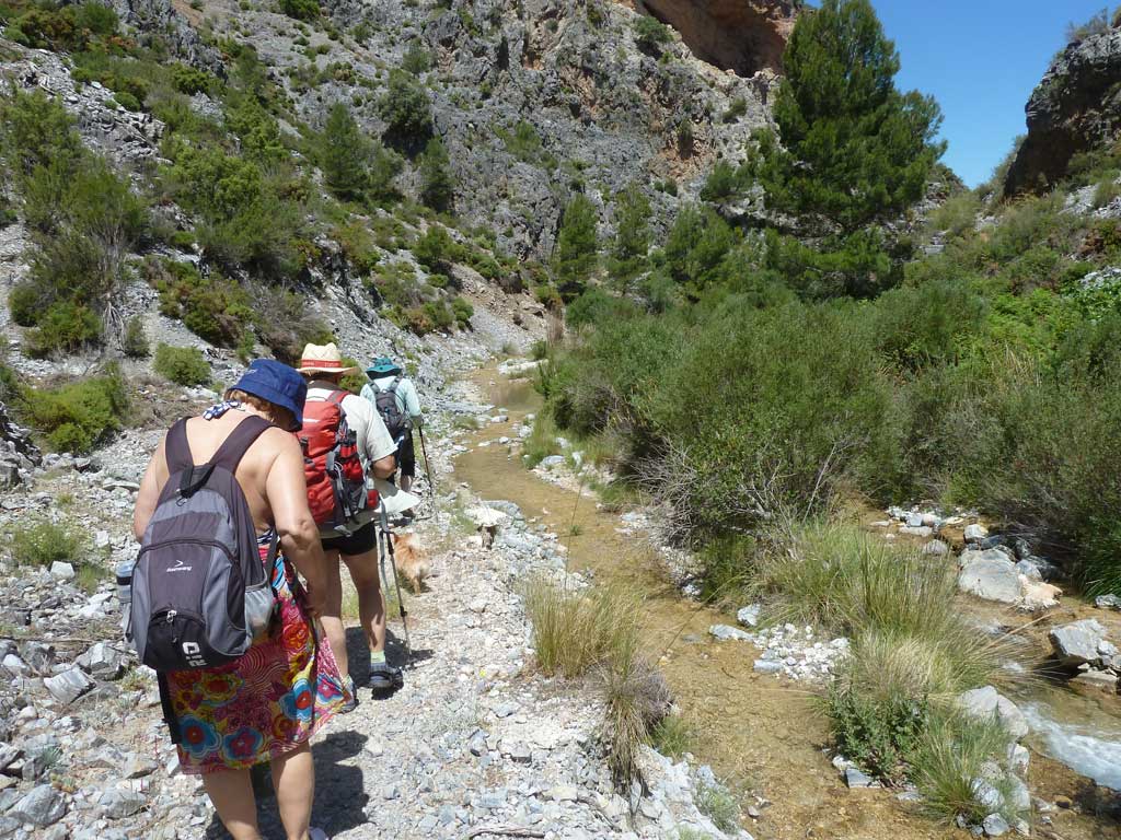 El camino de vuelta lo realizamos por el cauce del río, íbamos con calzado de agua y nos encontrábamos con ganas de mojarnos.