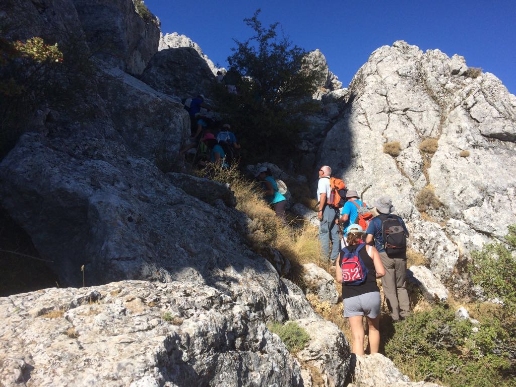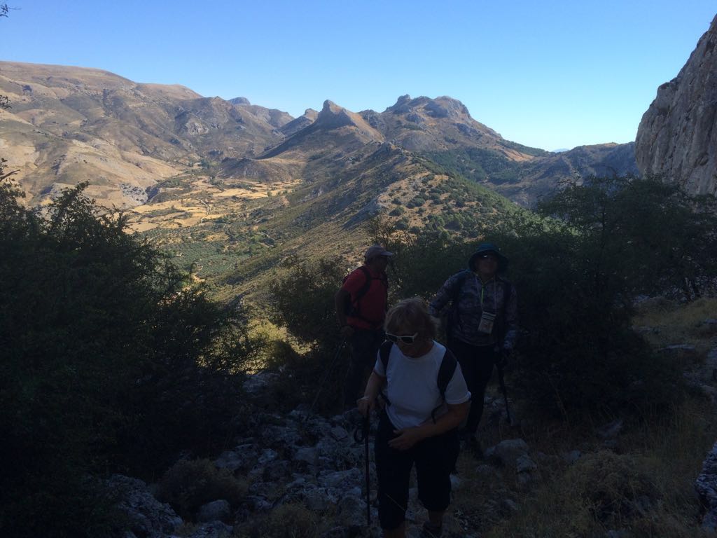 Durante la bajada del Jorobado recibimos un mensaje de Loli en el que nos informaba que los que abandonaron tras el Peñón de la Mata habían hecho terapia en el mismo bar en el que ella se encontraba, acompañada por alguna nueva incorporación y viejas glorias, comentando los aconteceres del día. Nos entró algo de envidia y bajamos por la directa, llegando en menos de media hora a los coches. En Cogollos vimos a Loli y compañía, nos contó la terapia que habían hecho y nos animamos a imitarla. Cuando llegó la hora de pagar Luis dijo que había que invitar a los conductores y al guía pero, tras un conato de linchamiento se votó para ver si pagaba el guía todo como forma de compensar el día que nos había dado.