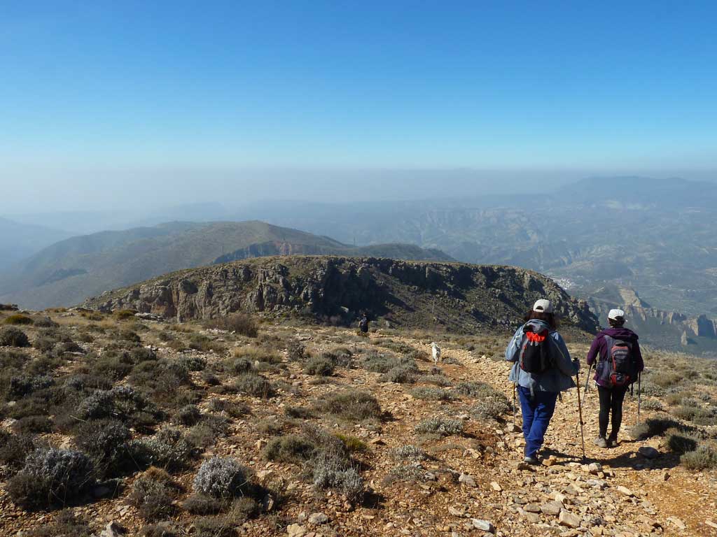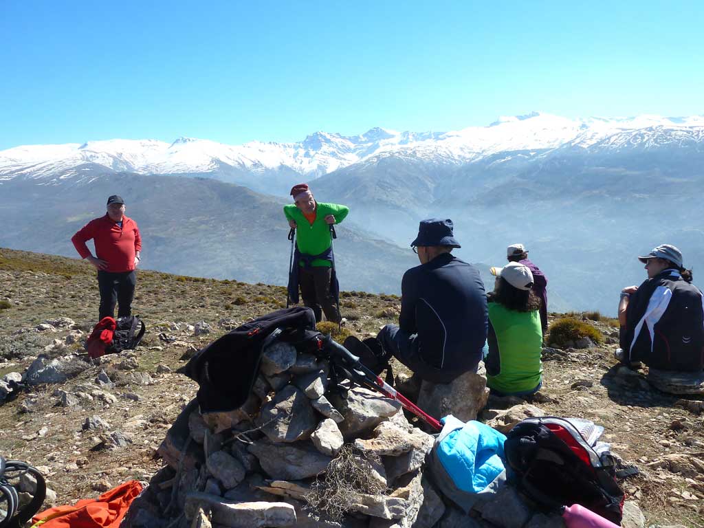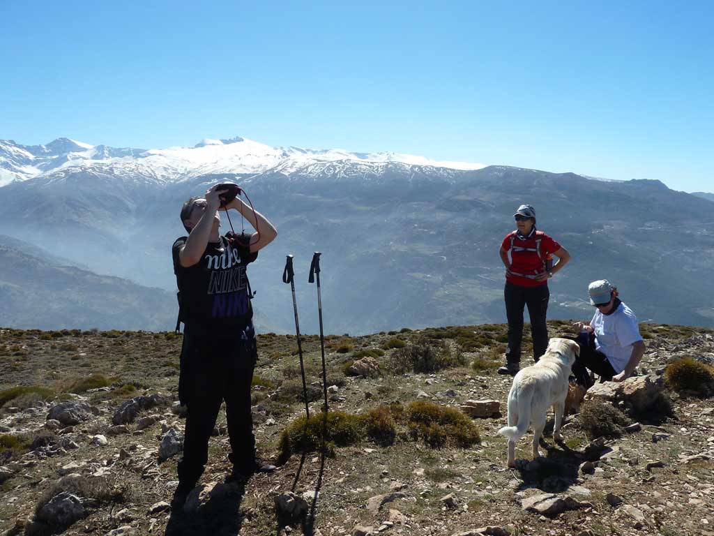 El ritmo no fue duro y hubo frecuentes paradas que aprovechamos para fotografiar las bellísimas vistas. A Pacoto tuvimos que pararlo porque venía en un magnífico estado de forma y se adelantaba constantemente, provocando en los guías cierto miedo a que se perdiera y terminara en el Veleta. Aquilino nos contó algunos atractivos de su querido Vélez de Banaudalla, como los Jardines Nazaríes. Nos prometió una salida por la zona.