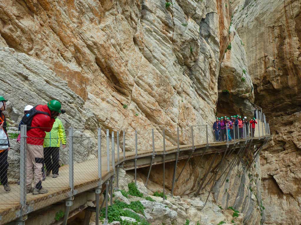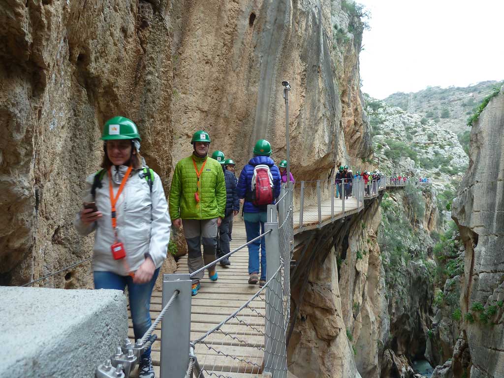 El Domingo tuvimos tanta suerte que ¡no llovió! Hicimos nuestra ruta prevista y esperada de “El Caminito del Rey”, que discurre en su mayor parte por una pasarela pegada a la roca, ¡pobre de quien tenga vértigo! Pero, para la mayoría de nosotros era flipante.