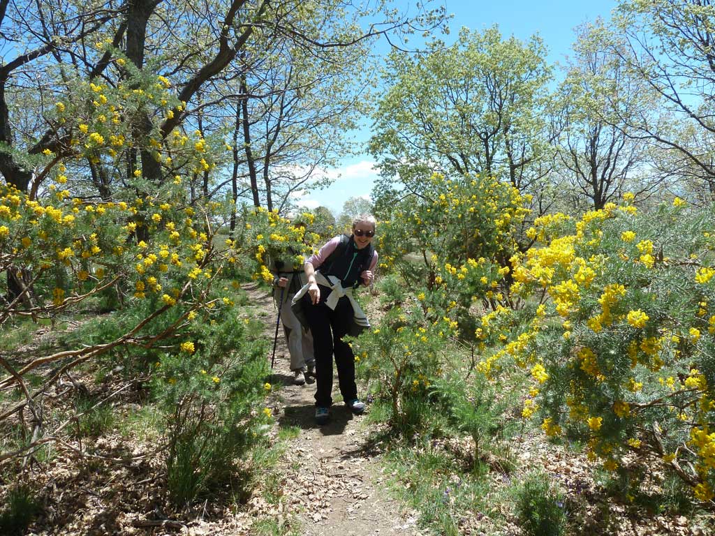 y que después de las lluvias del día anterior nos sorprende por su belleza de bosque de cuento, flanqueada la acequia por los retorcidos troncos de los robles y la floración silvestre, a nuestro paso descubrimos orquídeas, rosas silvestres, retama (gallomba), hasta las rascaviejas lucen espectaculares repletas de flores de amarillo intenso.