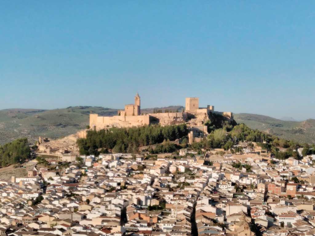 Tras presenciar la salida de miles de ciclistas que participaban en una prueba de montaña comenzamos a caminar atravesando calles de esta jienense localidad. Ascendemos levemente buscando lo que aquí se conoce como el «periurbano» y ya empieza a ser latente, visible, la impresionante mole de la fortaleza de la Mota mayormente de factura nazarí.