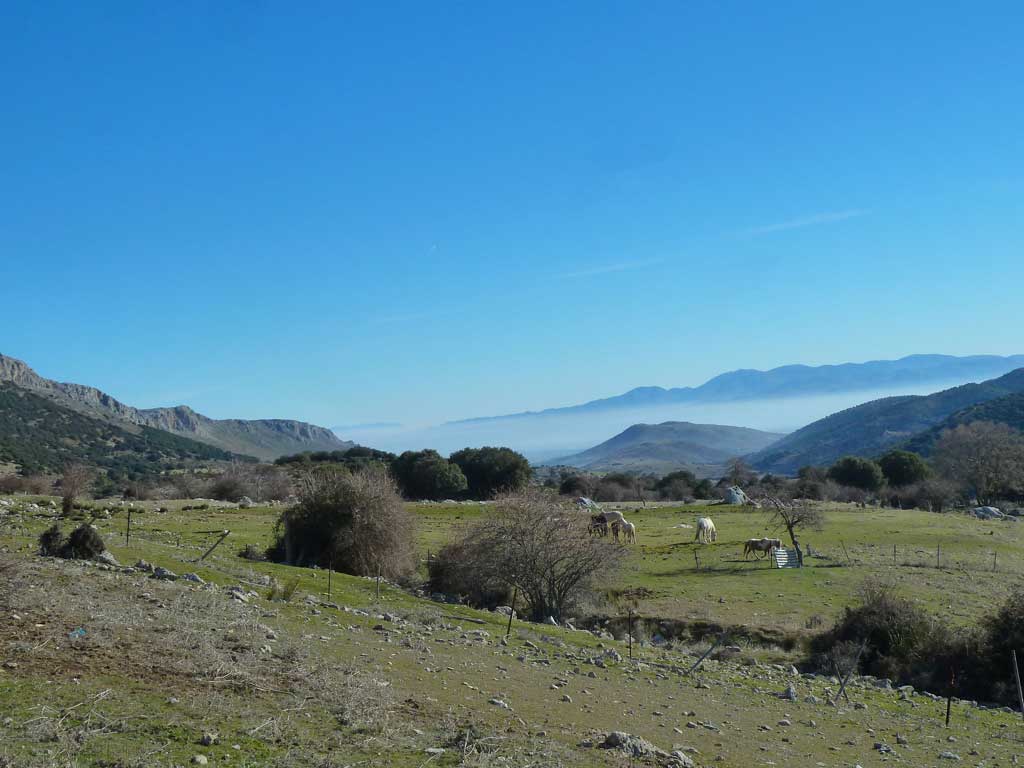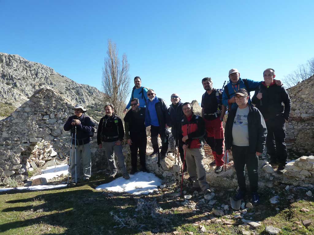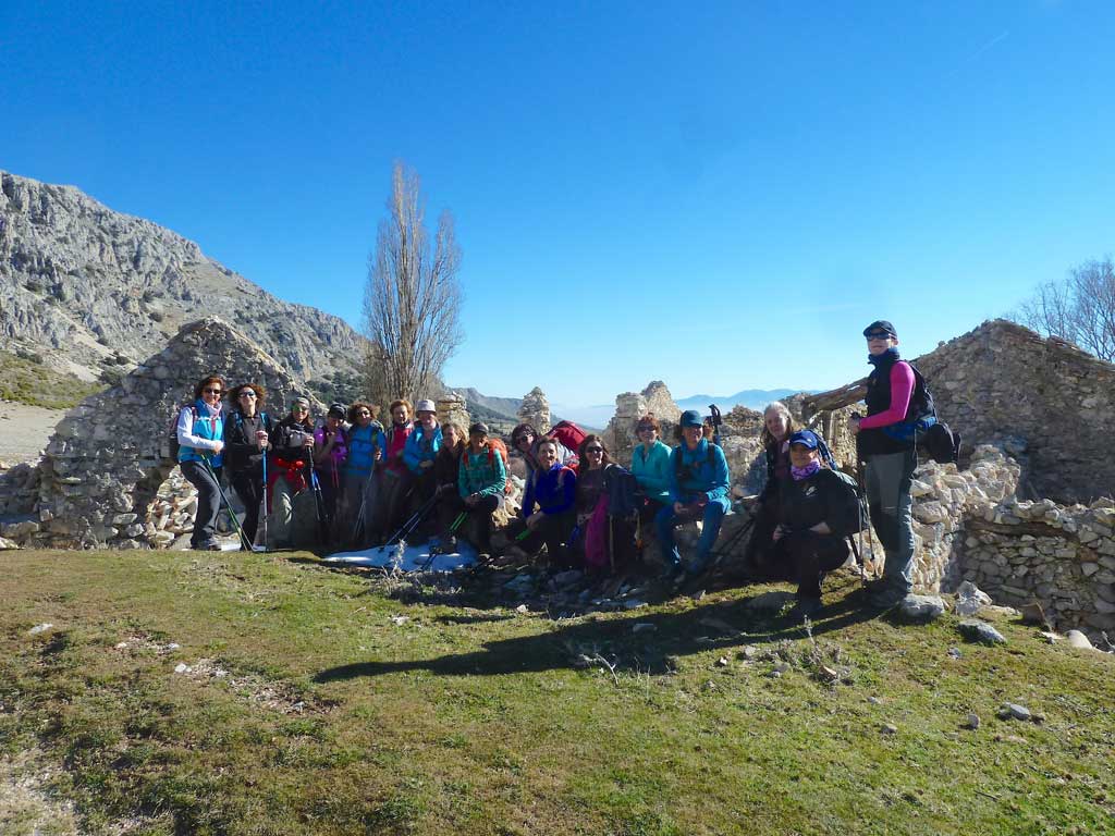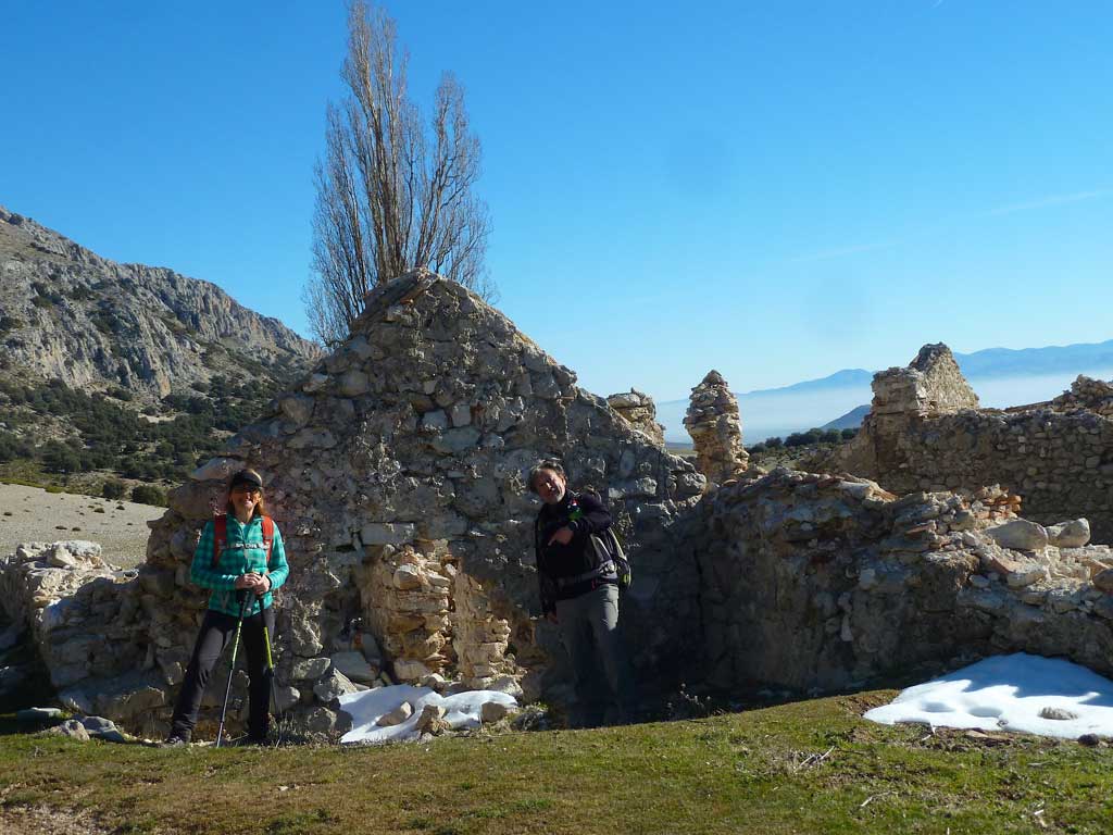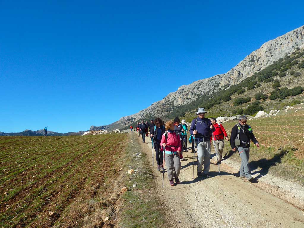 Tras haber dejado atrás mas de dos cortijos ruinosos, algún que otro borriquillo y unas poquitas placas de hielo en las zonas de mayor umbría, por fin llegó uno de los momentos mas amables de la ruta: la degustación de bocatas, frutas y otras viandas…., y, en esta ocasión, por gentileza de nuestra andarina Eva, unas deliciosas magdalenas que nos fue repartiendo.