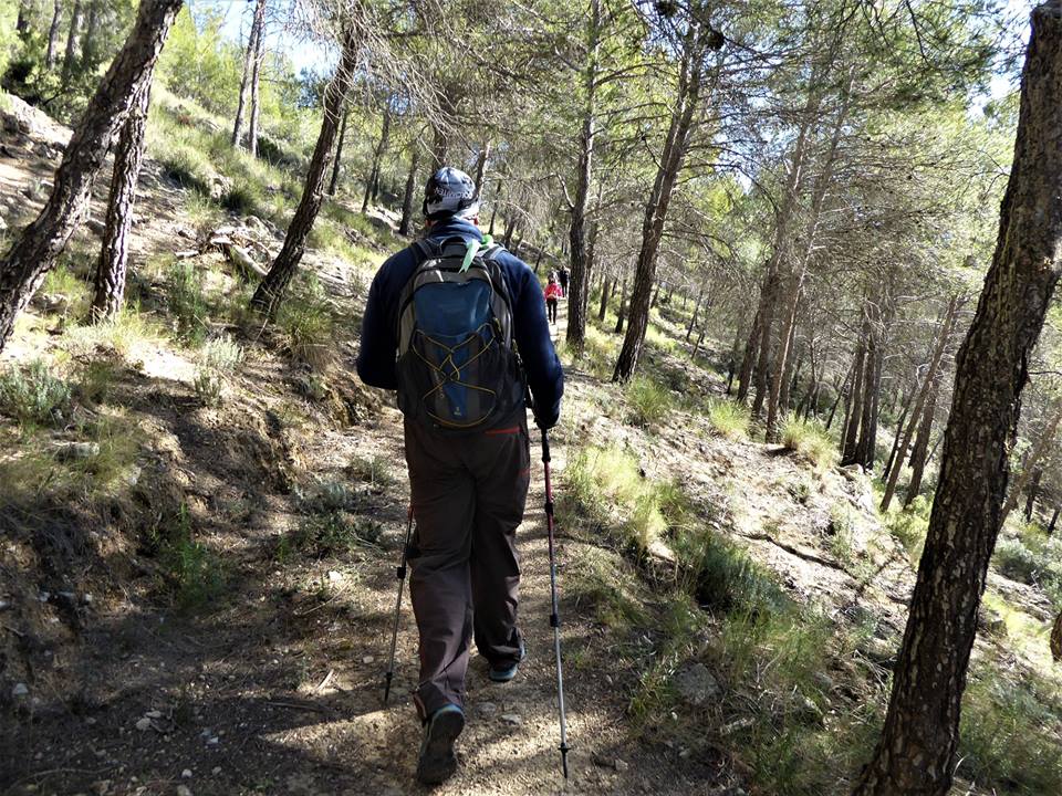 Bajamos entre pinos, atravesamos campos de olivos y vemos que hay esparragueras, al pie de los olivos, pero pocos espárragos, hay alguno que otro, Antonio Bonifacio y Rafí tienen buen ojo para encontrarlos, hasta nos comimos alguno, Rafi va con una bolsa de plástico y también encuentra algunas collejas. Se va a hacer en su casa una buena tortillita de verdura “ que rica” pasamos por el pequeño pueblo Cauro, nos paramos en una fuente, “Las Chozuelas” bebemos agua fresca.
