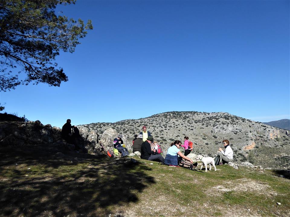 Nos encontramos un cortijo con un montón de cabrillas tomando tranquilamente el sol de la mañana, continuamos nuestra ascensión hasta llegar al Puerto de los Lobos Arteros donde descansamos y tomamos la fruta, con maravillosas vistas del pantano y el pueblo Cauro a donde nos dirigimos.
