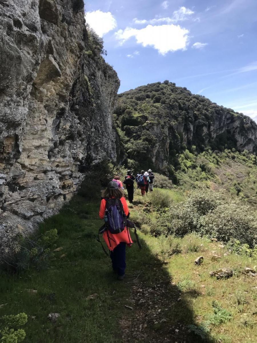 Iniciamos el recorrido en la entrada del pueblo, con una subida que nos lleva hasta las ruinas de la Ermita del Calvario, para posteriormente subir entre numerosas formaciones rocosas hasta la Cueva del Jabonero, donde algunos de nuestros valientes andarines se adentraron para explorarla.