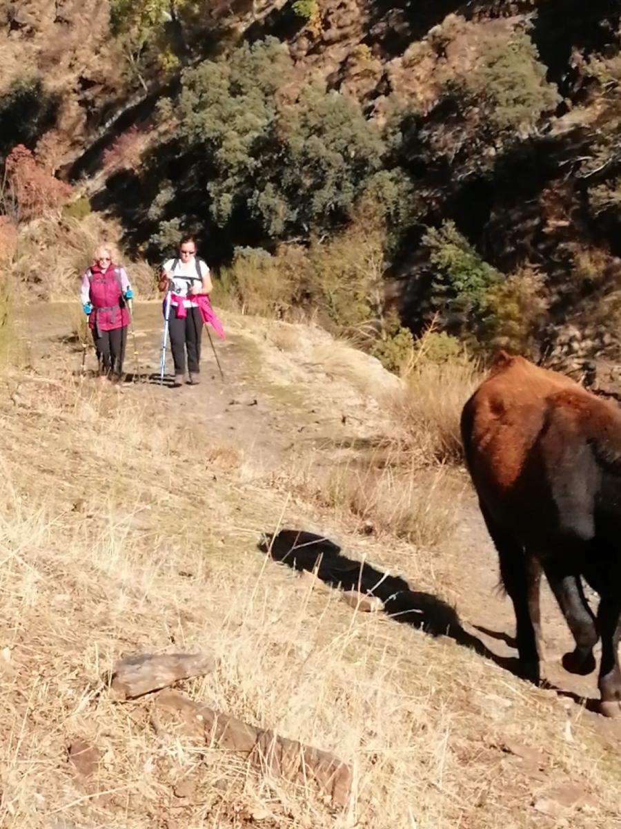 Tras atravesar la población  de  Güejar  Sierra en dirección al Barranco de San Juan (punto de partida), nos topamos con una carrera de Trail, por lo que algunos corredores nos dificultaron el camino en varios tramos, conseguimos pasar  los túneles por los que atravesaba el antiguo tranvía y llegamos a nuestro destino.