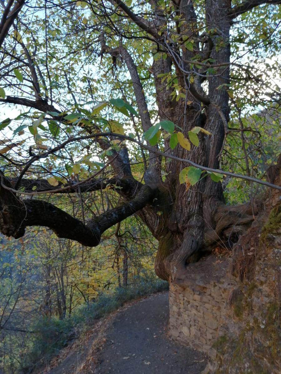 Preparados e ilusionados cruzamos el puente que da comienzo a nuestra ruta,  la Vereda de la Estrella,  la cual se inicia con una empinada cuesta que nos hace entrar en calor rápidamente mientras que nos vamos adentrando por el valle en el que abunda el agua y la vegetación, fresnos, alces y castaños cubiertos de los colores ocres y rojizos del otoño.  Pronto nos encontramos con el castaño centenario,  Miguel nos ilustra sobre su apodo, “El Abuelo”, y donde, como no podía ser de otra manera, nos hacemos las fotos correspondientes.