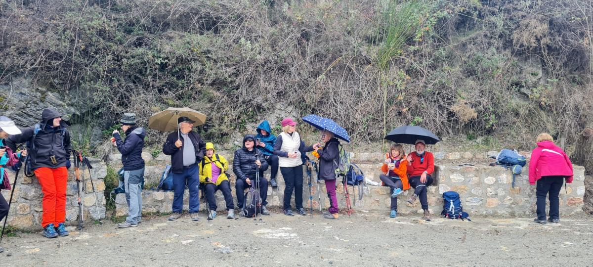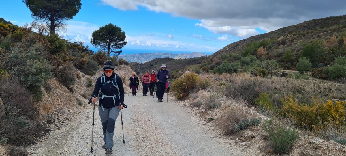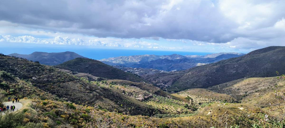 Esta vez éramos menos, apenas unos veinte. Repartidos los andarines y andarinas de esta inmarcesible peña en seis coches, a las nueve de la mañana del sábado 25 de febrero de 2023 emprendíamos la marcha desde la rotonda del Tío Oxidao rumbo al sur. El meteoro manda, y como las previsiones apuntaban que en la zona a la que en principio nos íbamos a desplazar, Beas, era muy posible que nos cayera la mundial, a última hora de la víspera se acordó dejar esa excursión para más adelante y en su lugar hacer ese día otra distinta, programada en el calendario para el mes de noviembre. Nuestro destino era el pueblo cercano a la costa cuyo nombre es Ítrabo (Itrabo para Canal Sur), situado en la falda de la loma de Bodíjar, estribaciones de la sierra de los Guájares (Guajares para Canal Sur).