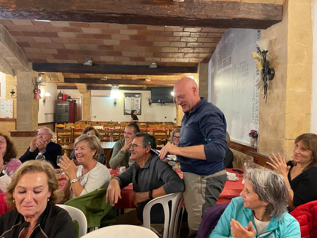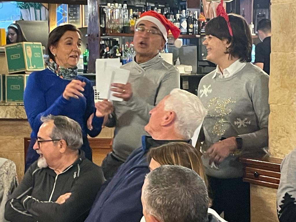 Después vino, como último acto, la entrega de regalos a algunos de los presentes en agradecimiento por su trabajo callado para que la peña siga funcionando a satisfacción: José Antonio, Inma, Loli, Miguel, Nacho, Carmen Moral, Luis, (espero que no se me olvide ninguno)… y servidor. Tengo que decir que os estoy muy agradecido por premiarme por estas croniquillas, pero que lo mío no es nada comparado con la labor de organización y trámites de todo tipo, necesarios para la buena marcha de la peña, y que lo que yo hago, insisto, puede hacerlo cualquiera en estos tiempos en que a base de Wikipedia todo el saber (o gran parte) está a la orden de un click. Tampoco quiero que eso de retratar por escrito lo vivido en las salidas sea algo así como un monopolio, por lo que animo a otros a que se sienten al teclado y se pongan a la tarea, que todo es eso: ponerse.