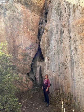 Volveremos nuevamente al camino de tierra, donde tras caminar un rato nos adentraremos a la izquierda por un bosque de encinas que nos llevará hasta unos espacios funerarios de Covachas y grietas.